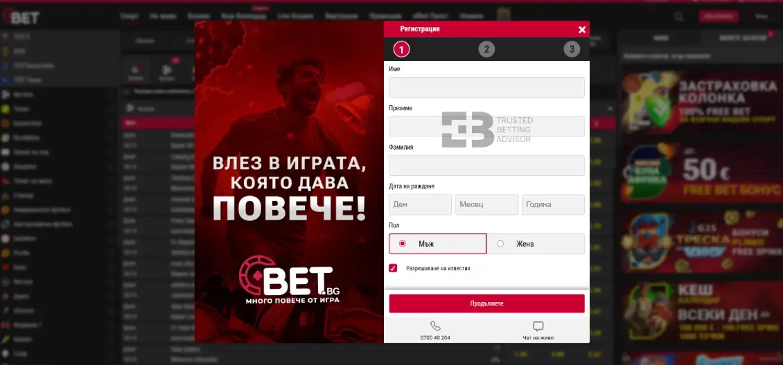 Вход и Регистрация в Bet.bg