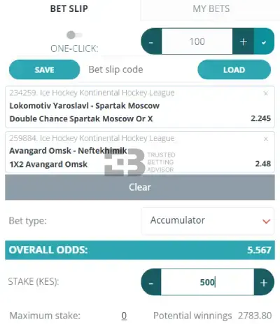 - Save/Load Bet Slip Code – Populate your bet slip with preselected match events to create an alphanumeric code to share or reload later. This comes in handy when building a multi-leg accumulator across devices or when you want to share with other bettors. The code is generated from the betslip menu and reloaded by entering it back into the same field.