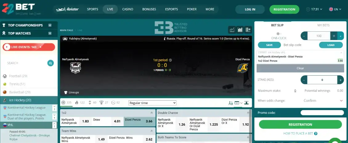 - Log in to your 22Bet account at 22bet.co.ke