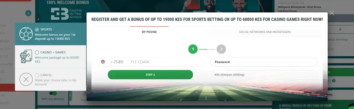 The bookmaker is popular for its massive 1,200+ market depth, with M-Pesa integration for local deposits and withdrawals.