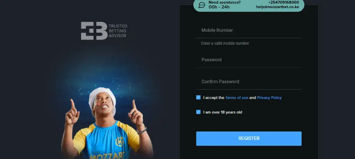 The sign-up process at Mozzart Bet Kenya is straightforward without any hurdles. You only need your phone number and password to set up your account. An SMS confirmation code is sent to your phone number to fully register your account.