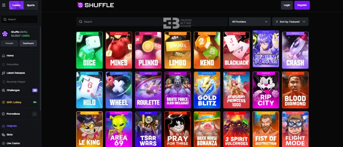 Shuffle Casino games section boasts more than 15,000 titles with provably fair Originals, dynamic slots, and high-stakes SHFL Lottery draws. This lineup will guarantee non-stop action for every mood.