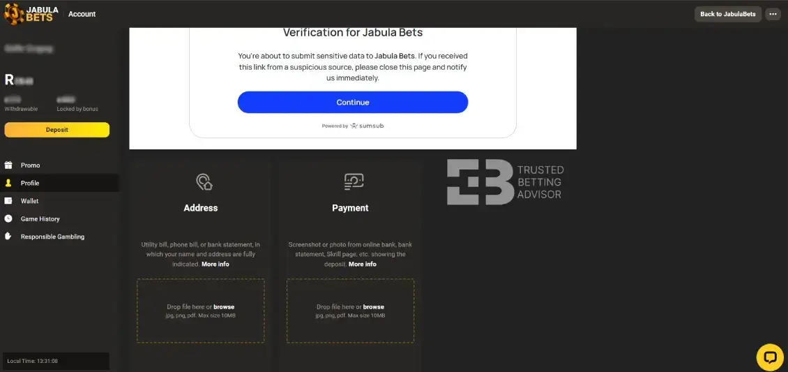 Jabulabets also requires you to provide details about your ID card and source of funds. This is to ensure that you’re a South African resident and have a legitimate income source.