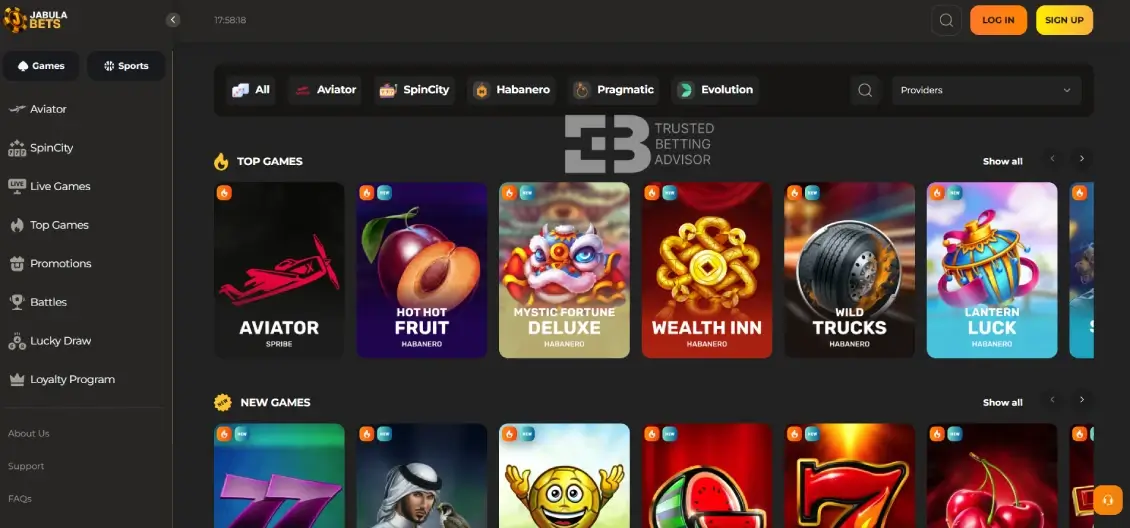 Jabulabets is quite diverse, which means you have lots of options beyond the usual sports betting and casino games. Here are the sections I found: