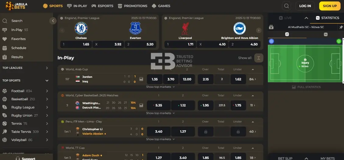 The betting markets across various sports at Jabulabets are quite notable. Here’s a look at the available options: